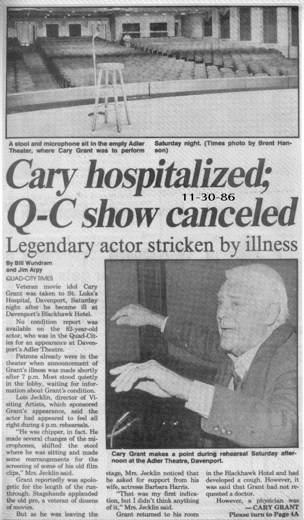 I had tickets to attend "A Conversation With Cary Grant" in Davenport